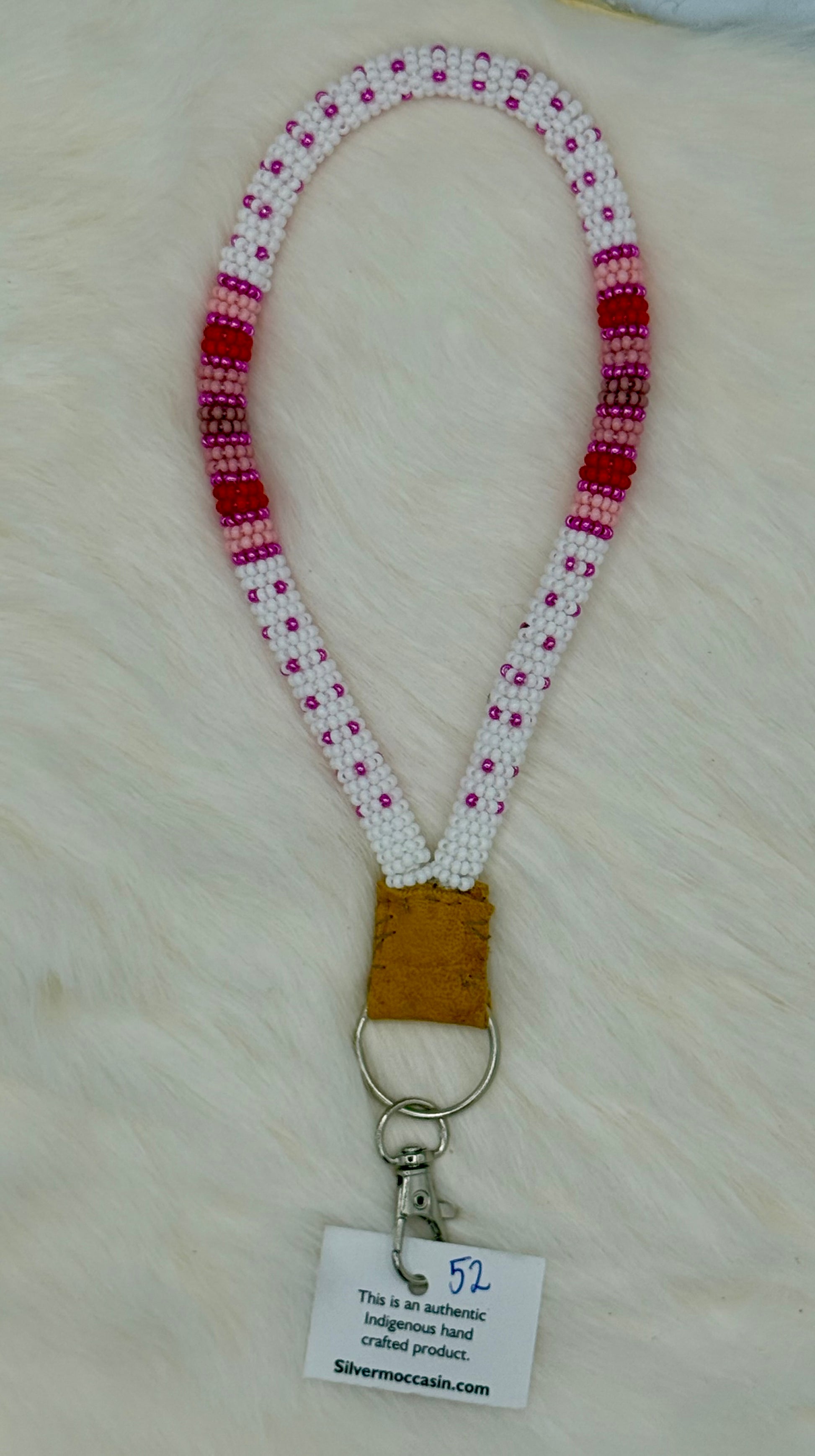 These beaded lanyards are handmade by local Indigenous artists using traditional techniques. Each piece features carefully woven glass seed beads, durable hardware, and a unique design—no two are the same. Perfect for holding keys, ID badges, or everyday essentials.
